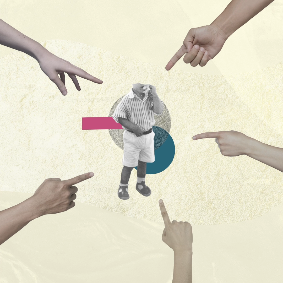 Tom's story is awkward, funny, and a little bit haunting, a childhood memory of being pulled on stage and made to scream like a fish. The collage style felt like the right fit here, ransom-note lettering and layered textures that mirror the scrappy, slightly surreal quality of the memory. It needed to feel handmade and a bit chaotic, like the kind of story you piece together years later and still aren't sure really happened.