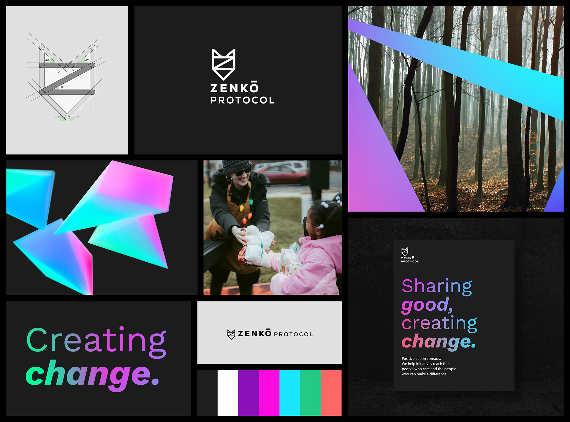 The goal was to create something flexible enough to work across different causes, but consistent enough to always feel recognisable. The identity brings that ambition into focus: bold, confident typography alongside a geometric fox mark built on precise angles, a vivid colour system designed to represent the breadth of causes they support, and a visual language that leans into movement and dynamism at every level — from typography to motion.